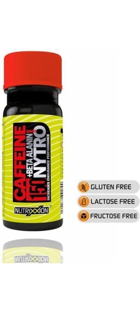 Nutrixxion Caffein Shot is een voedingssupplement met cafeine (250 mg per 100 ml) en beta-alanine. Veel professionele atleten vertrouwen op cafeine voor en tijdens wedstrijden. Cafeine benvloedt je lichaam op vele manieren. Het helpt om wakker te blijven, ondersteunt je stofwisseling en dwingt je mentale focus. Ingrediinten: water, guarana extract. Zuurtregelaar: acid, flavor, beta alanine, caffeine, nicotinamide. Zoetstoffen: acesulfame K, sodium cyclamate, sucralose. Conserveermiddelen: sodium benzoate-E211, potassium sorbate-E202.